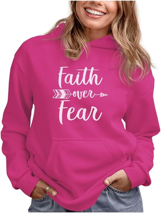 - Faith Over Fear Hoodie for Women and Teens - An uplifting hoodie designed to share a positive message. Ideal for layering in fall, winter, or chilly indoor settings. Ideal for church, casual outings, or spiritual reflection. A great addition for those seeking inspiring hoodies for girls.